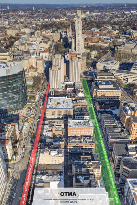 These changes support Phase Two of the University Line project which aims to improve connections between Downtown Pittsburgh, Uptown, and Oakland while improving reliability and enhancing the overall travel experience for riders. Additional safety and accessibility upgrades include new sidewalks and curbs, ADA-compliant ramps, traffic signals, and enhanced pedestrian safety systems. Additional information regarding routing and stop changes will be announced by Pittsburgh Regional Transit soon.